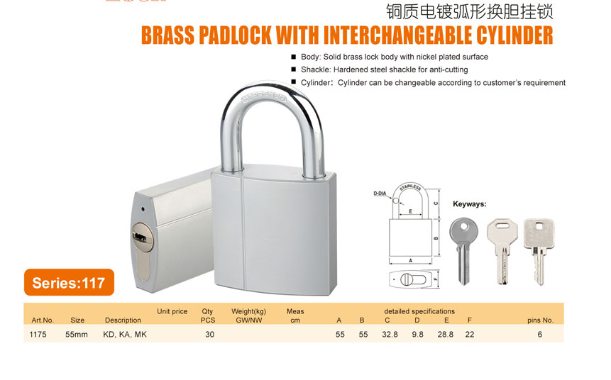 銅質電鍍換膽掛鎖